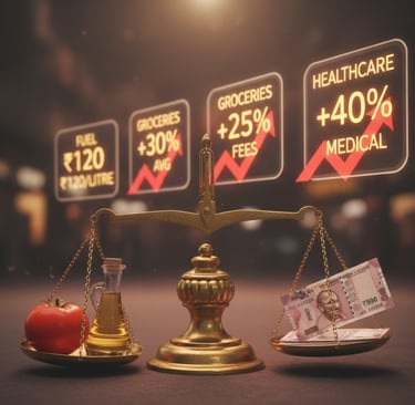 In daily life, inflation can be seen in rising school fees, increasing house rents, higher medical expenses and even growing electricity bills. A middle-class household that earlier managed monthly expenses within ₹20,000 may now require ₹30,000–₹35,000 to maintain the same lifestyle